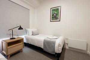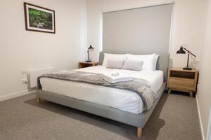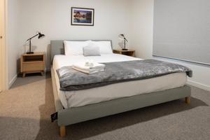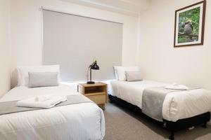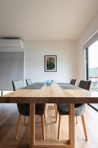 Our 2 bedroom accommodation, Keppel and Lake Mountain, can accommodate a maximum of 4 guests including adults, children and infants. This makes them the perfect size for a family of four, or two couples. Each house has 72sqm of floorspace, open plan living with flatscreen internet-ready TV, a fully equipped kitchen, dining seating for 6, one king bedroom and one twin bedroom with single beds, plus a sunny balcony with outdoor seating.