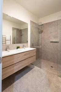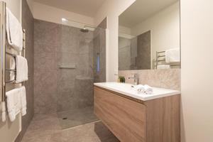 - Bathroom: Large double shower, heated towel rails, double sink/vanity, hairdryer, separate toilet
