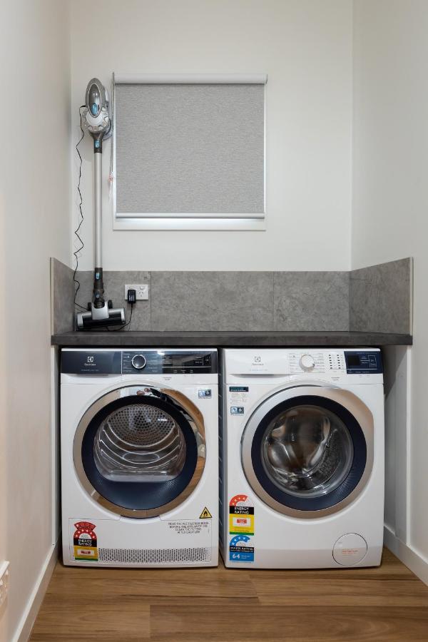 - Laundry: Washing machine, dryer, sink, ironing board & iron